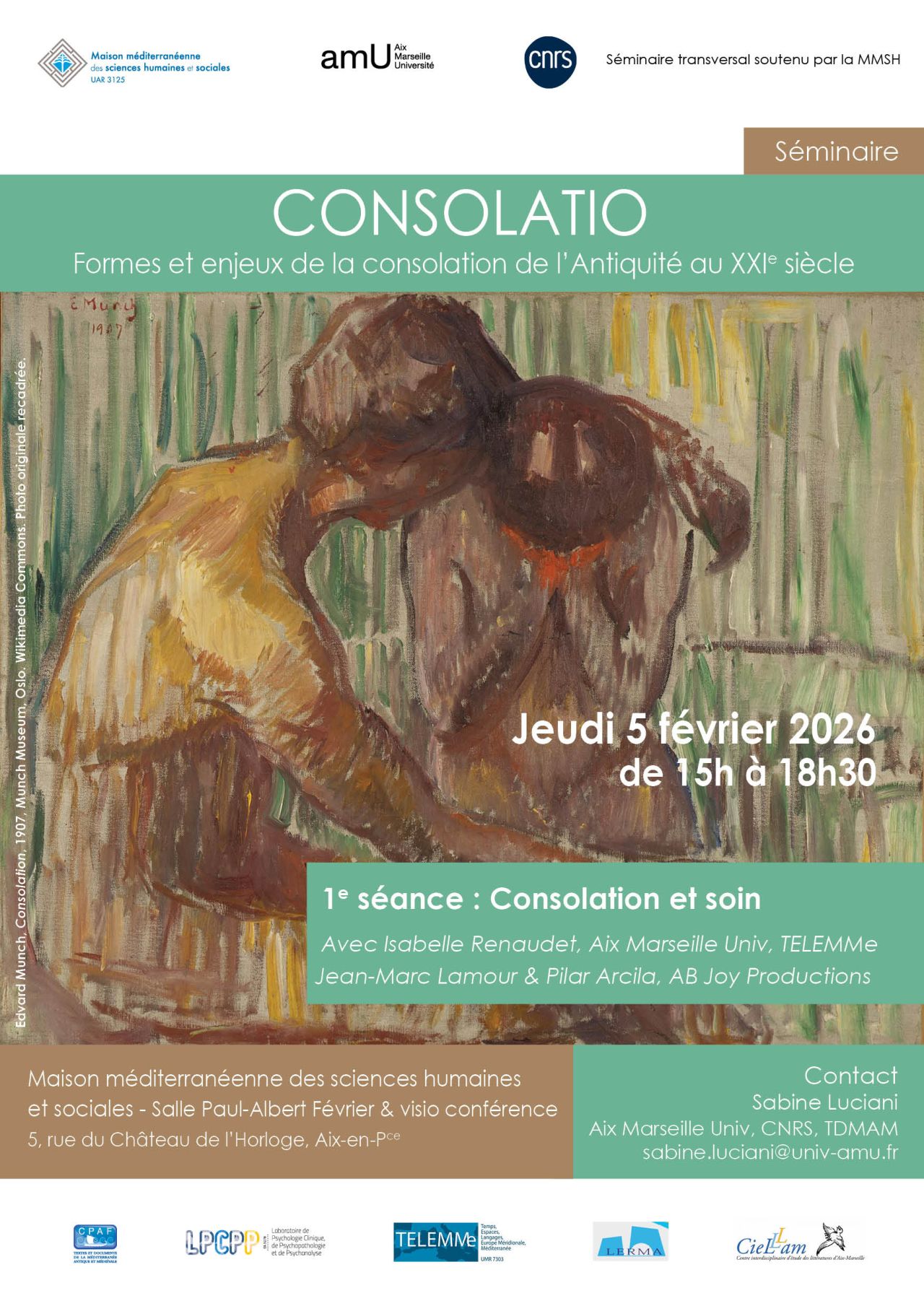 Consolatio, l’un des séminaires inter-laboratoires de la MMSH, organise sa première séance de l’année 2026, le 5 février : « Consolation & soin »