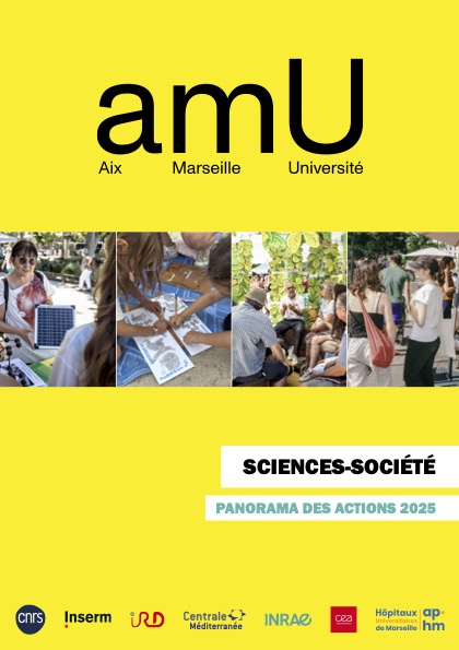 | Le bilan-panorama 2025 sciences et société est en ligne ! Aix Marseille Université revient sur une année de rencontres entre scientifiques, citoyennes et citoyens. Festivals, ateliers, films, émissions, cafés des sciences… lire ce panorama, c’est découvrir la diversité des rendez-vous qui ont eu lieu en 2025. Bonne lecture ! Ce panorama est coordonné par la cellule de culture scientifique de la Direction de la recherche et de la valorisation d’amU. Retour notamment sur les actions de la Mmsh et des laboratoires associés au pages suivantes du Panorama 2025 : pp. 26-27 : La Supérette des idées reçues p. 92 : Journées européennes de l’archéologie p. 96 : Journées européennes du patrimoine p. 100 : Faites des sciences humaines Plus d’informations |